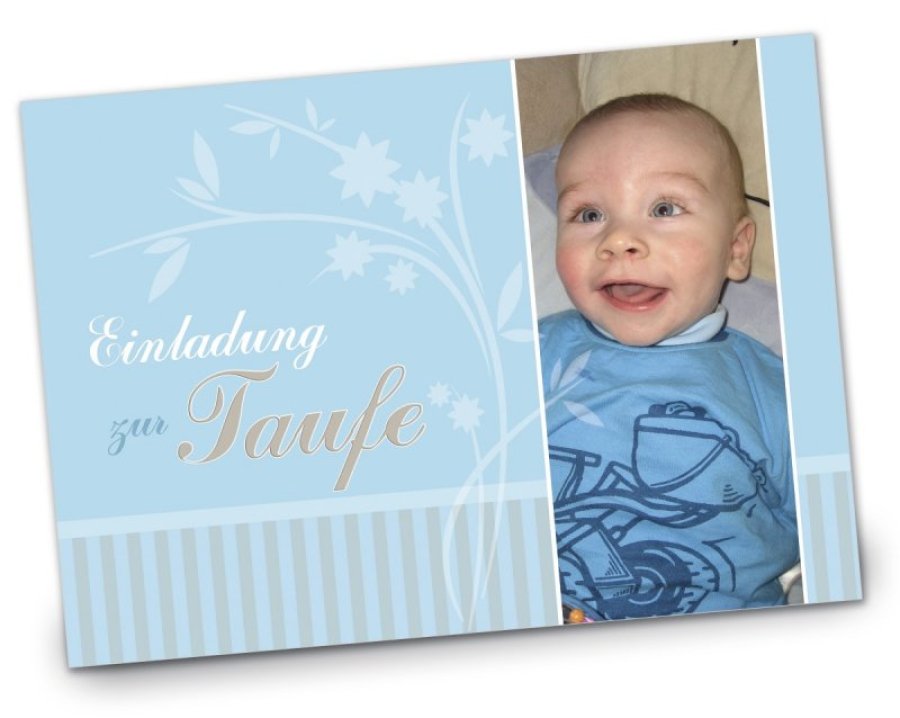 Mit dieser individuellen hochwertigen Karte können Sie Freunden, Verwandten, Bekannten und Arbeitskollegen zur Taufe Ihres Kindes einladen. Ihre persönlichen Fotos und die passende Farbwahl machen diese Einladungskarte zur Taufe zu einem individuell gestalteten Unikat in hoher Qualität.