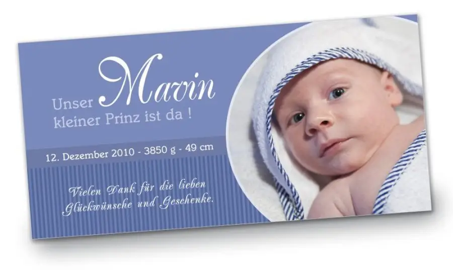 Die Geburtskarte Babykarte "Marvin" ist modern und vielseitig gestaltet. Sie bietet Platz für ein großes Foto Ihres Kindes auf der rechten Seite.