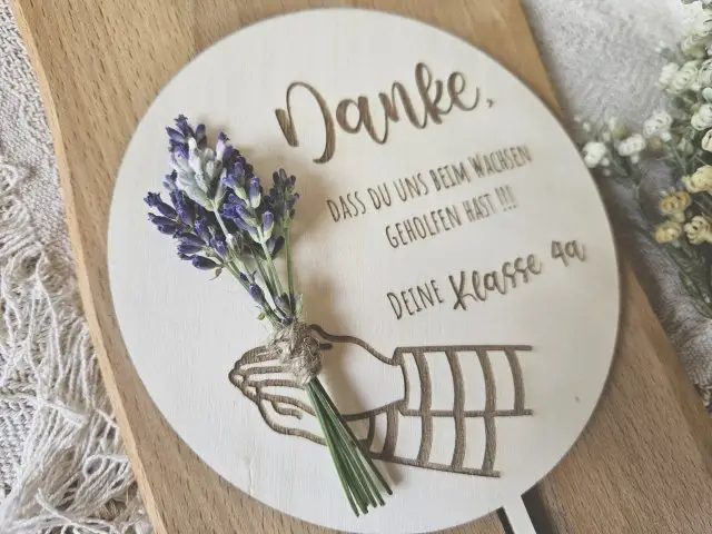 Unsere wunderschönen Blumenstecker / Cake Topper können wunderbar in einen Blumentopf oder Blumengesteck dekoriert werden. Diese individuelle Blumendekoration kann mit einem beliebigen Text oder einer netten Botschaft angepasst werden. Mit unserem professionellen Laser schneiden wir deinen Wunschtext ganz individuell auf unterschiedlichen Materialien.Unsere Blumenstecker sind eine wunderbare Danke Geschenkidee für z.B. Verabschiedungen, Kinderkarten, Schule, Kollegen, Mitarbeiterinnen und werden durch ihre Personalisierung zu einem einzigartigen Unikat.
