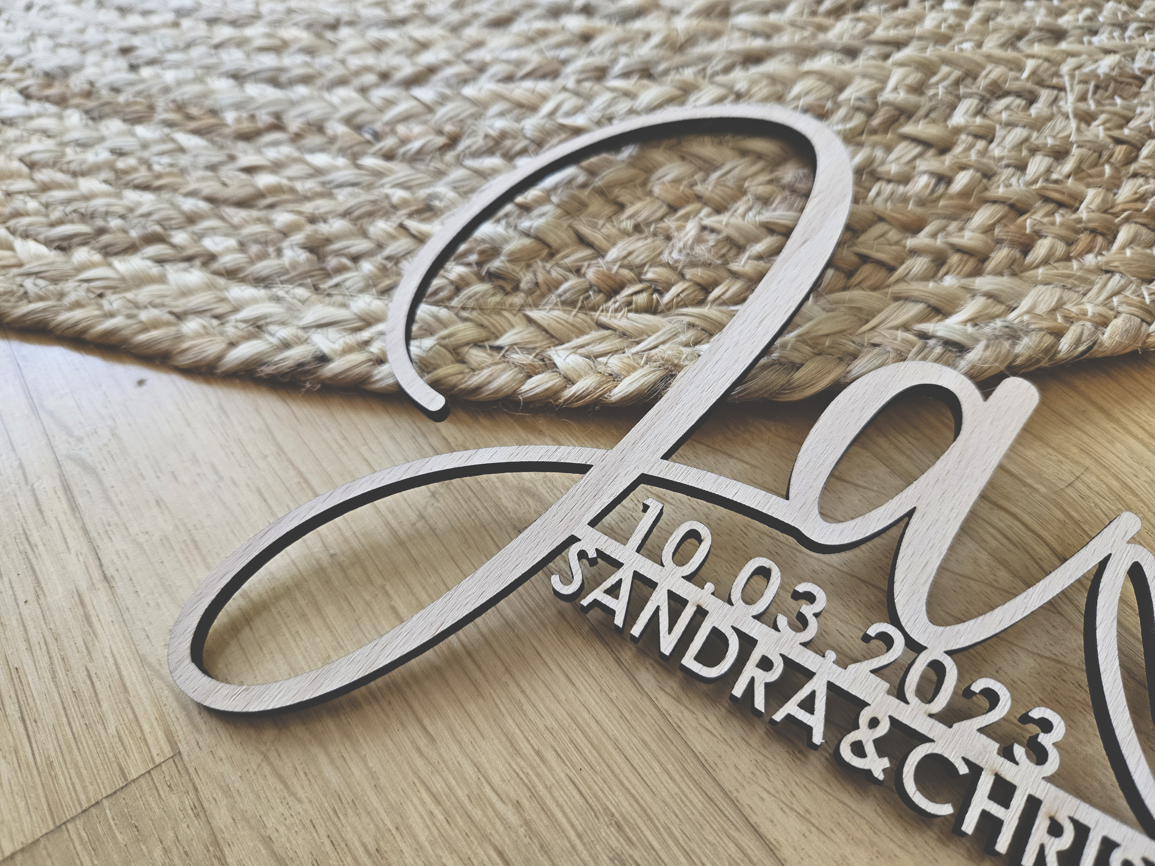 Startseite » Personalisierte Geschenke » Lasercuts » Schilder » Lasercut "Hochzeit 1" mit individuellem Laserschnitt