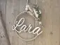 Namensschild "Lara" aus Holz mit Jute-Hoop und Trockenblumen