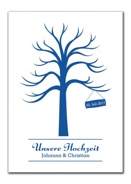 Mit unserem Wedding Tree Gästebaum gestalten Ihre Gäste ein einzigartiges Gästebuch für Ihre Hochzeit, Konfirmation, Taufe, Geburtstag, etc. Denn ein nackter Baum, der auf eine hochwertige Leinwand/Keilrahmen gedruckt und aufgespannt wurde, wird am Ende der Feier mit einem prächtigen Blätterkleid erstrahlen. Jeder Gast stempelt mit Hilfe eines Stempelkissens seinen Fingerabdruck auf den Baum und schafft mit seiner Verewigung eine ganz persönliche Erinnerung an einen wundervollen Tag.